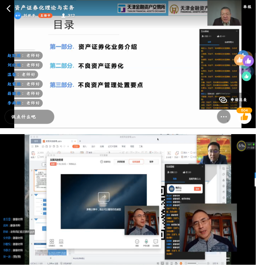 春季学期秉持“停课不停学”的精神,老师们选择爱课程、学堂在线等平台的慕课资源,使用腾讯会议和雨课堂、微信、钉钉直播等在线教学工具保证疫情期间教学顺利开展,并在工作群里及时沟通反馈教学中存在的问题,调整授课方式,确保教学质量不降低。工商管理系于庆东教授讲授的财务管理课程对ppt的每一页录制旁白连同word版的学习重点提前发送给学生,使得学生在慕课的学习中更具有针对性,学习完每周课程之后再在慕课上做测试以及完成老师布置的任务更加深了同学们对知识点的理解和掌握。