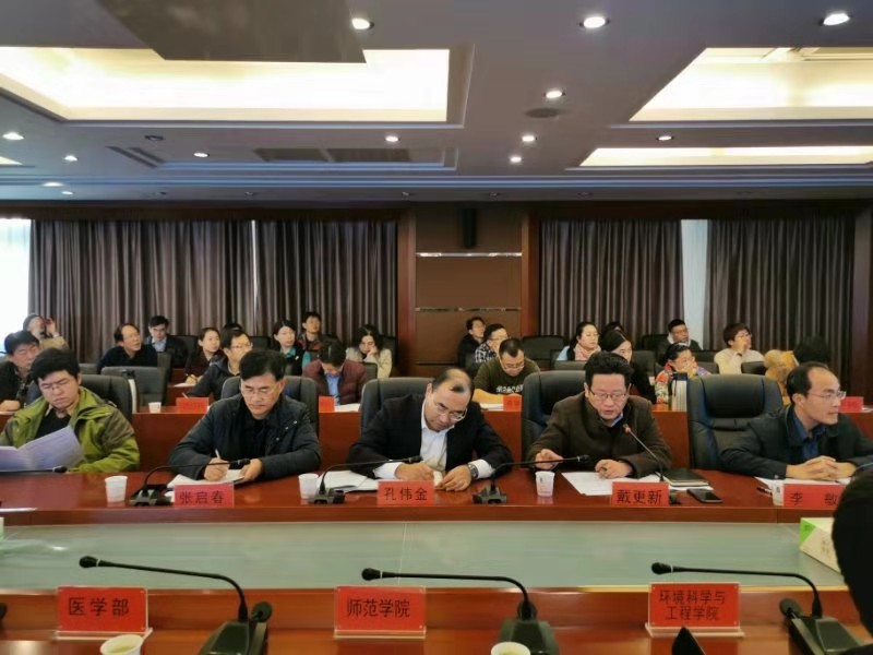 孔伟金副校长凝练了本次推进会的三方面任务:一是梳理总结2017年以来课程建设方面的成绩和问题;二是研究部署2019年国家级一流本科课程的申报工作;三是重点调动教师积极深入到课程申报、建设和培育中去。他指出此次一流本科课程申报,需要从三个角度加深理解和落实。第一,深入理解一流本科课程建设和申报的重大意义。一流本科课程建设是教育部全面振兴本科教育的重要部署,是教育部深入推进一流本科教育的重要举措,也是学科评估、博士点建设、专业认证和水平体现的重要指标。同时一流本科课程建设也是我校落实党代会人才培养基础工程,提高人才培养质量的重大机遇。第二,准确把握一流本科课程建设和申报的内涵、标准和条件。一流本科课程建设和申报应当准确把握和深入研究五类课程申报的指导思想、总体要求、基本原则和建设内容。特别是注重课程的创新,围绕“以学为中心”和学生能力培养,重视课程教学方法、模式、考核、评价等环节的创新。注重课程建设过程中,融入课程思政元素和创新创业元素。第三,扎实组织好国家一流课程申报培育工作。各学院要认真梳理、深入研究、抓紧抓实、真抓实干,将一流课程申报、建设和培育作为当前最重要的工作扎实推进。