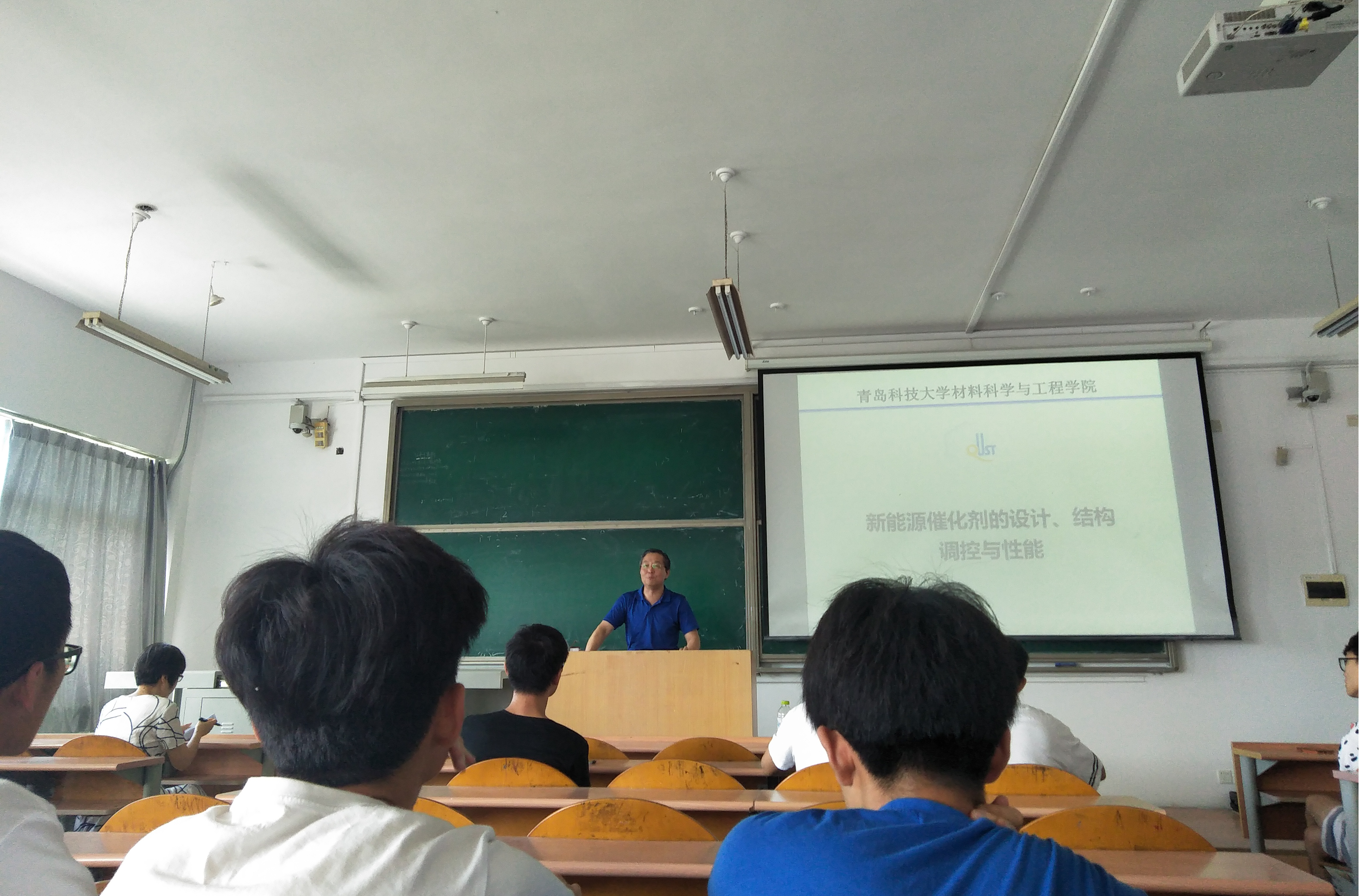 2019年7月5日上午9:00——11:00青岛科技大学的谢广文教授于青岛大学金家岭校区西院一教309教室为应用技术学院近80名理工科本科生,研究生作了《新能源催化剂的设计、结构调控与性能》的学术报告。