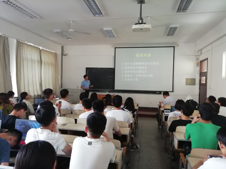 2019年7月5日下午,我国著名网络空间安全学科带头人、东南大学网络空间安全学院教授、博士生导师、江苏省网络与信息安全实验室副主任胡爱群教授应邀至我校,为电子信息学院师生奉献一场精彩的知识盛宴---《无线物理层安全技术》。电子信息学院2016级、2017级通信工程专业100余名学生与通信工程系教师聆听了报告。电子信息学院卜庆凯老师、于腾老师主持报告。