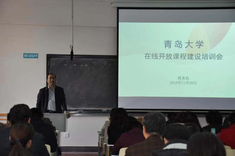 11月29日下午,我校在浮山校区博知楼203教室召开在线开放课程建设培训会,2018年第一批在线开放课程建设项目主持人,新旧动能转换专业对接产业项目所涉及专业的负责人、承担在线开放课程建设任务的课程负责人、有意实践线上线下混合式教学的教师、教务处负责人和相关工作人员共70余人参加了培训会。