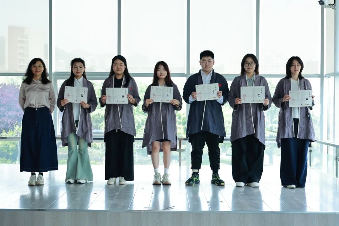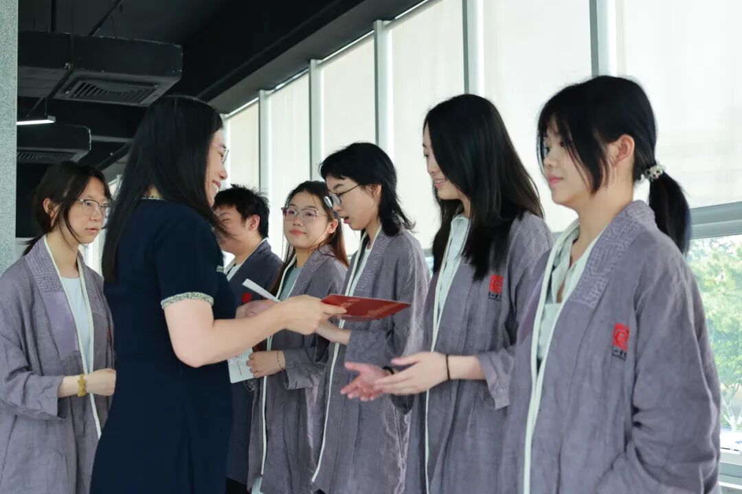 典礼第一项是颁发结业证书环节。经过严格考核评议,2021级30名同学、2022级45名同学凭借通识课程修读成绩、素质实训参与度及综合表现,达到浮山书院人才培养标准,由修业导师为其颁发浮山书院结业证书。