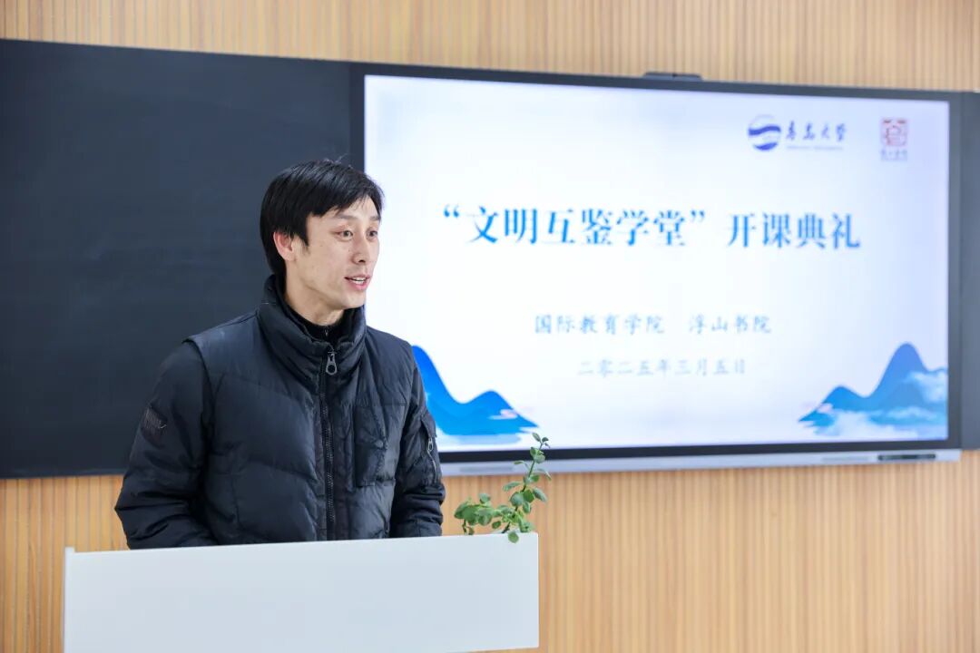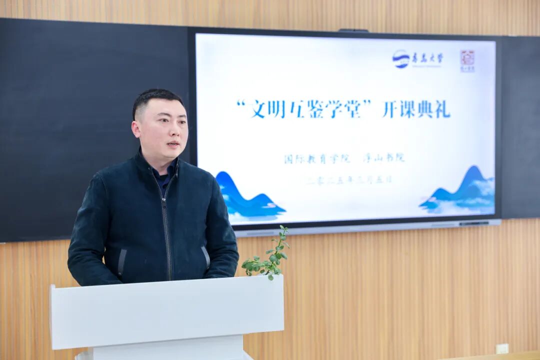 2025年3月5日下午,浮山书院与国际教育学院文明互鉴学堂共建的中华传统文化系列课程开课仪式在文化艺术楼大音堂举行。