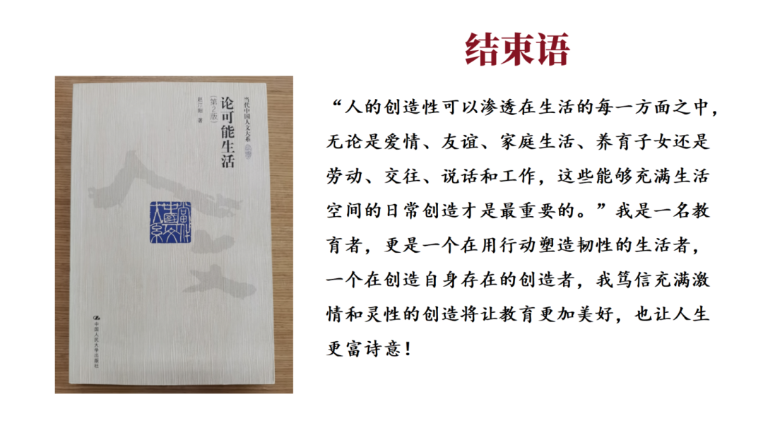 “真正的成长,是根须深植土壤,心灵始终向阳。”卢老师的分享,不仅是个人故事的讲述,更是对浮山书院立足素质教育一路坚持创办的生动诠释。书院从无到有、规模由小到大的成长之路,曾经遇到数不清的问题、难以突破的瓶颈,卢老师攻读博士学位的初衷,就是为“浮山书院如何继续活下去”探求出路,好在有韧性,赋予我们愈挫愈勇的勇气与不断前行的力量,也才有了书院一届一届的教育传承。卢老师强调,在充满不确定性的时代,唯有深耕内在、坚守热爱,方能在风雨中保持向上的力量。
