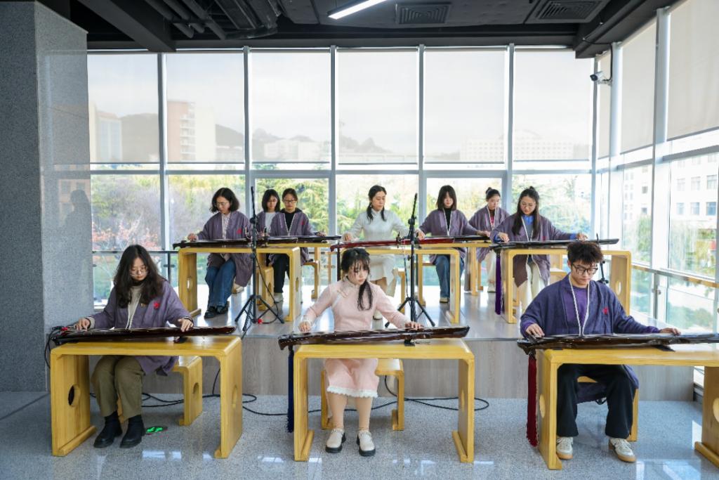当教师组的老师们携手演绎《仙翁操》时,古琴艺术已经不仅是一种技艺的展现,更成为了一种生活哲学的传递。在繁忙的教学与日常之余,老师们总不忘踏入古琴教室,自主练习。这份坚持与热爱,正是对“仙翁”之境的生动诠释。他们以琴为友,于纷扰中寻得内心宁静,追求那超脱世俗的至高境界。