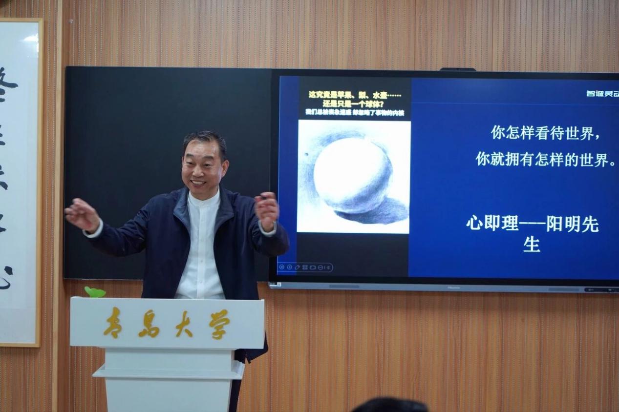 2025年11月21日晚,浮山书院内灯火通明。第一期“企业家进课堂——活出生命的意义”讲座在此举行,笔者有幸聆听了青岛大学校友、青岛智诚灵动文化咨询公司董事长王诚营老师的分享,遂有如下记录与感悟,题为《心光如月,照见本心》。