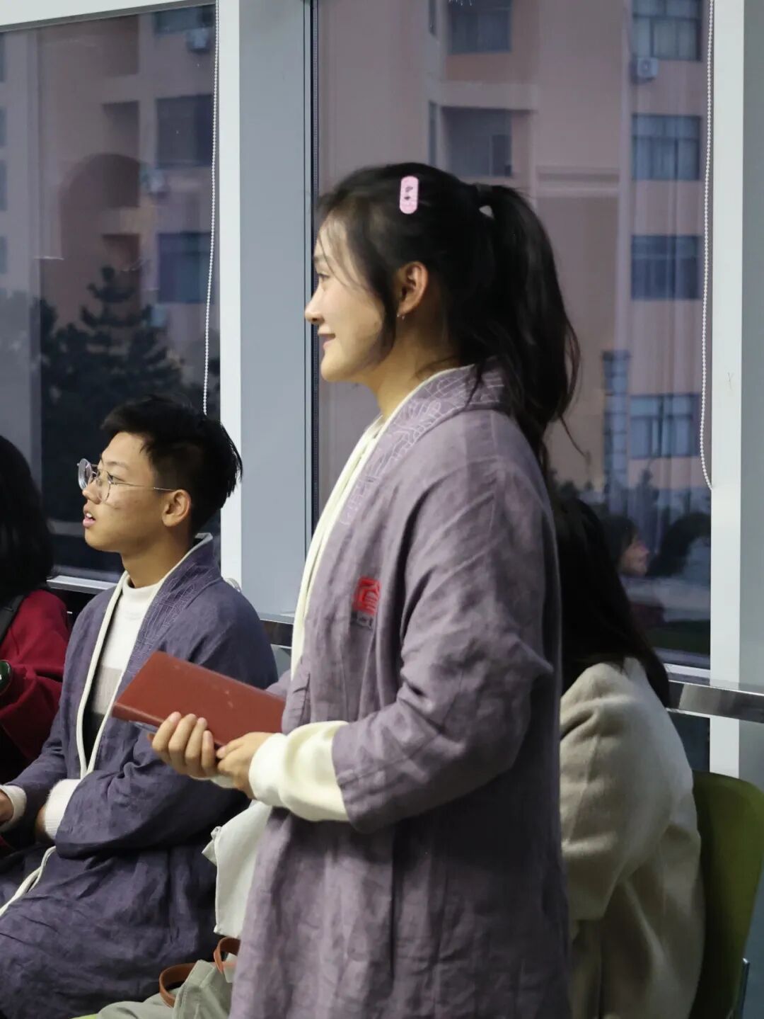浮山书院卢文丽老师主持本期“湖畔问学”,她在结束语中谈到,我们的眼睛是向外观看的,但也要向内觉察,与其说“找到自我”,不如说“回到我”,回到不被贴以标签的自己,引起在座同学的共鸣。最后,张永进老师为三位嘉宾赠送由本次活动海报制作的水晶摆台作为礼物,全体师生合影留念。
