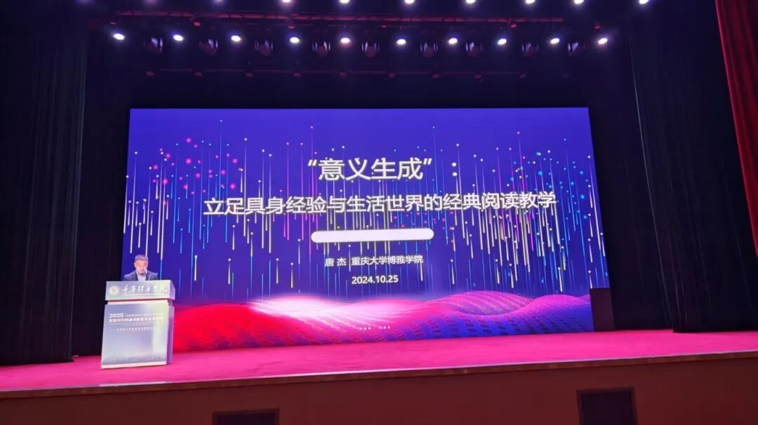 重庆大学博雅学院副院长唐杰作题为《“意义生成”:立足具身经验与生活世界的经典阅读教学》的发言,强调人文教育应引导学生超越工具理性,通过中西经典阅读和共同体生活探寻生命的意义和价值。
