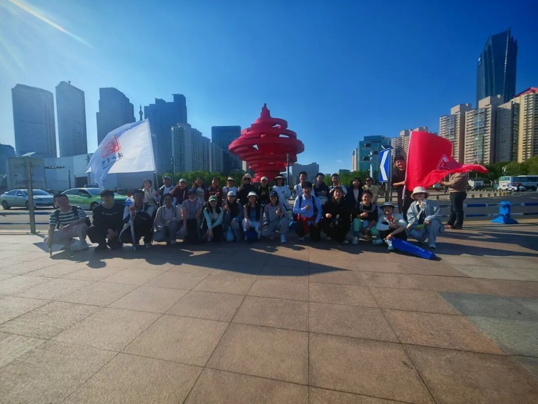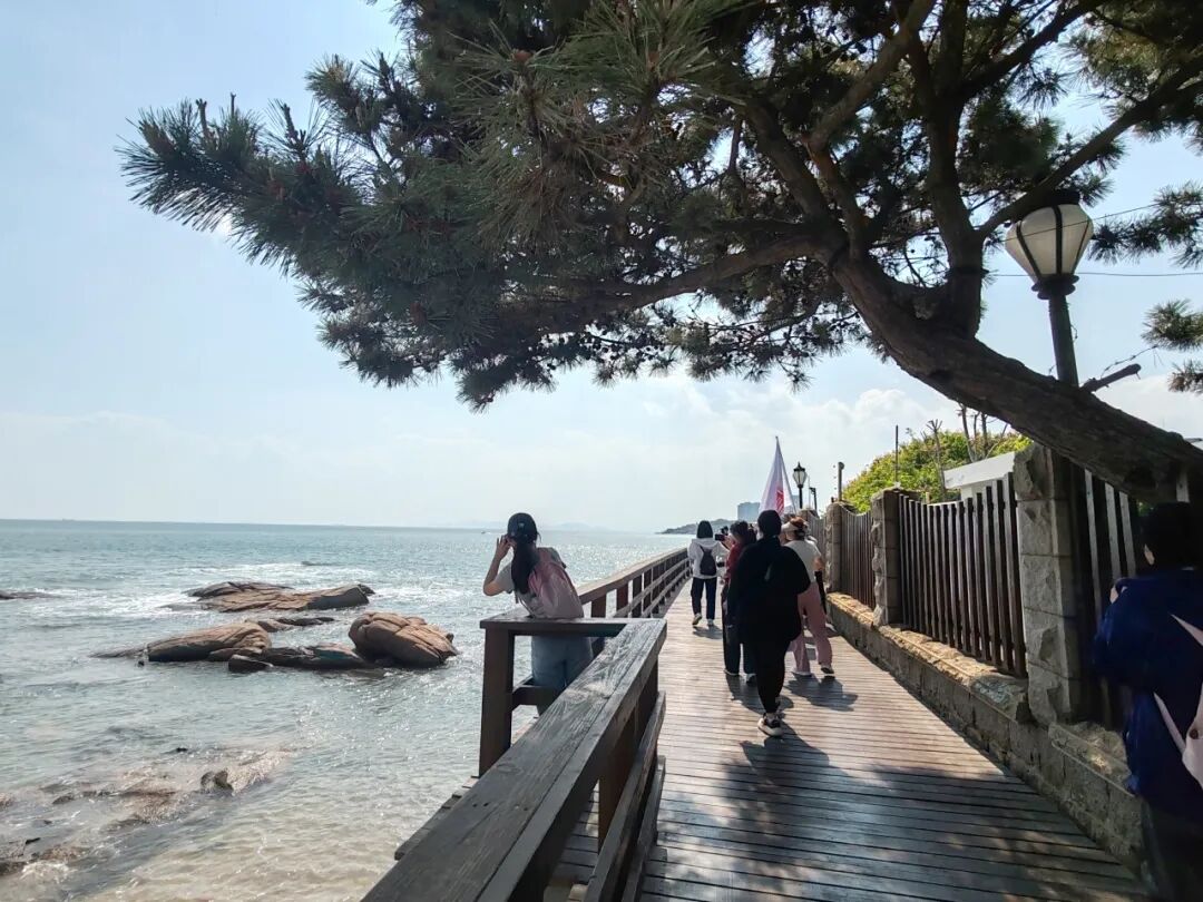 少年们于石老人海水浴场合影,在青岛雕塑园驻足,踏上行游之旅。