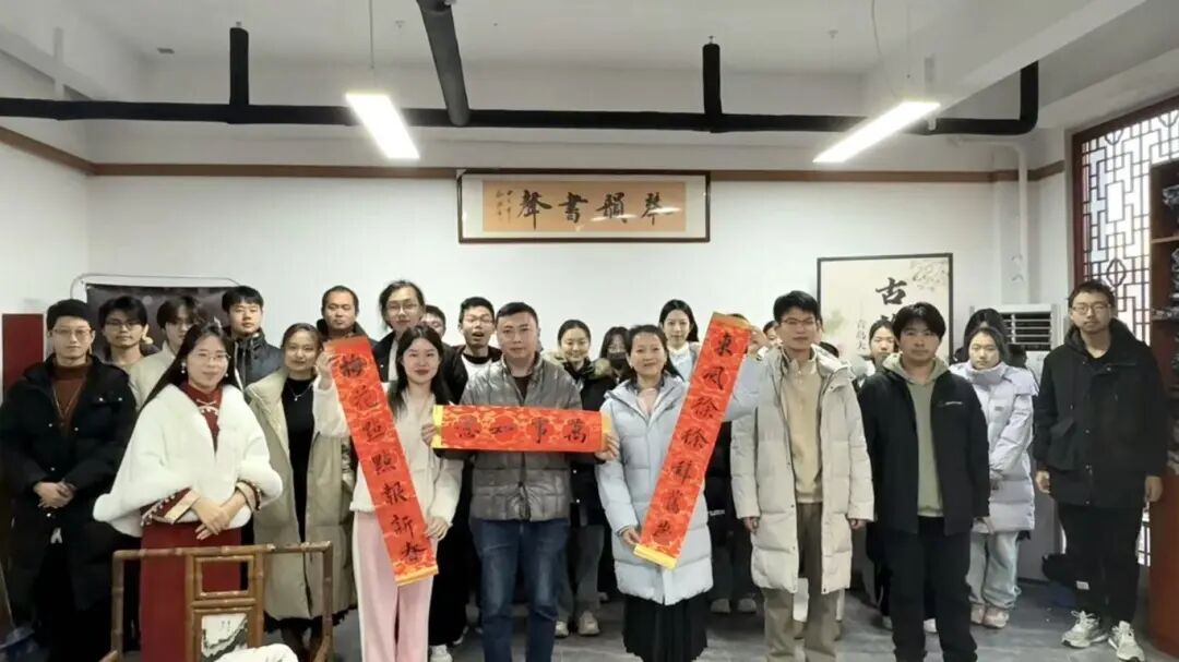 不知不觉,活动进行到了尾声。优秀演奏者获得了奖品——红红火火的对联一副,嘉宾们则获赠《论语》,寓意新的一年吉祥如意,博文雅性。几位老师共同为古琴室贴上了“福”字。