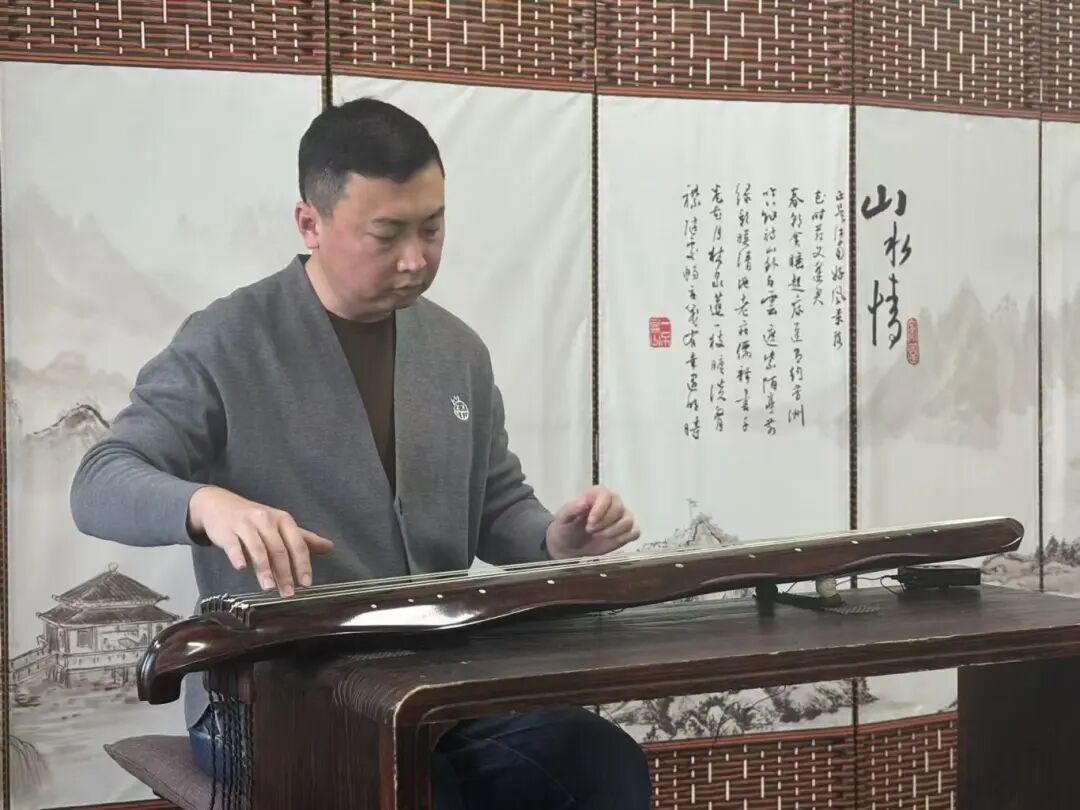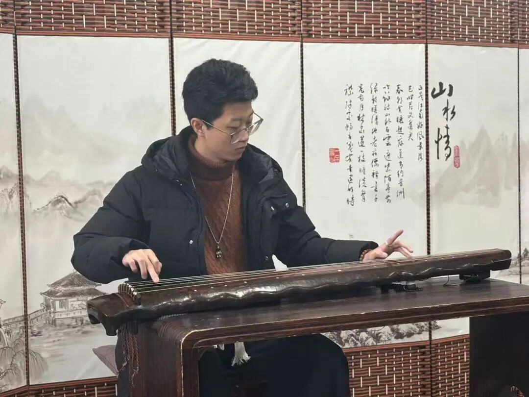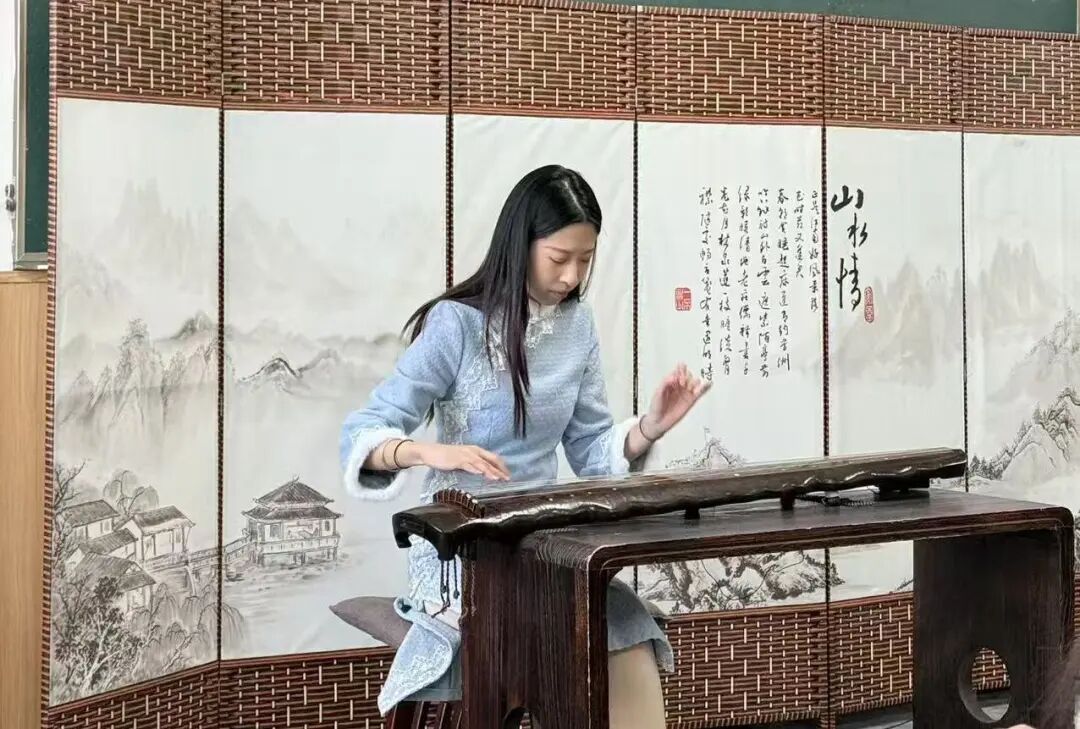 赵老师在一片掌声中捻起了第一根琴弦,只见他的双手在节奏中不断地跳跃、滑动,琴弦仿佛有了生命,在一次次起伏中奏出美妙的音符,让人仿佛在高山上望着平静的湖面,几只孤雁时不时传来空灵的鸣叫。