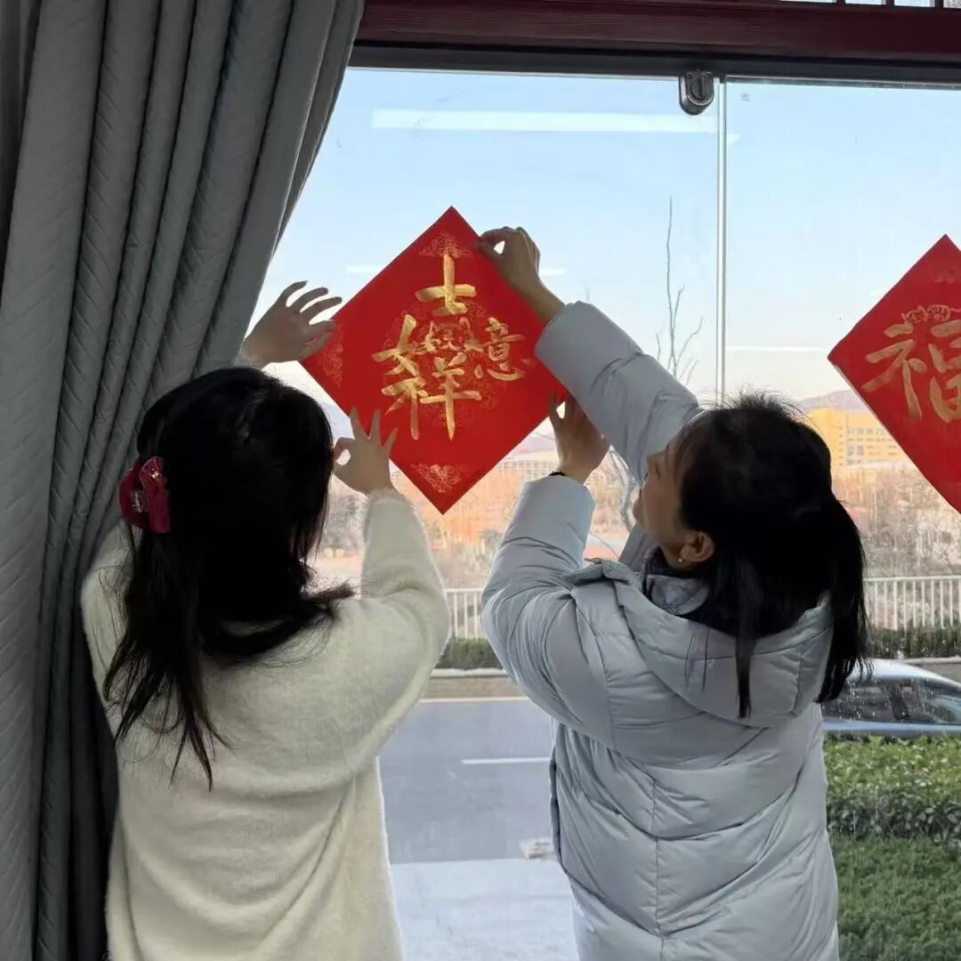 老师们一起贴“福”字