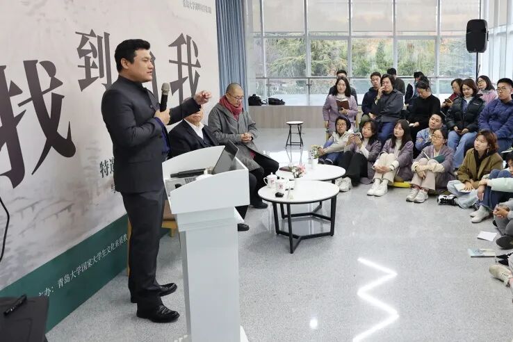 11月24日下午,浮山书院在文化艺术中心C座三楼举行“湖畔问学”第3期。浮山书院学术顾问、青岛大学原副校长徐宏力教授受邀作为主讲人,茶文化践行者、淨悅山房创始人淨之,青岛大学美术学院2005级视觉传达平面设计毕业生、青岛嘉博智合品牌设计有限公司总经理步宪垒受邀作为与谈人,三位嘉宾围绕“找到自我”这一主题,与来自各学院的数十名学生进行深入交流。青岛大学教务处副处长张永进老师出席了本次活动。