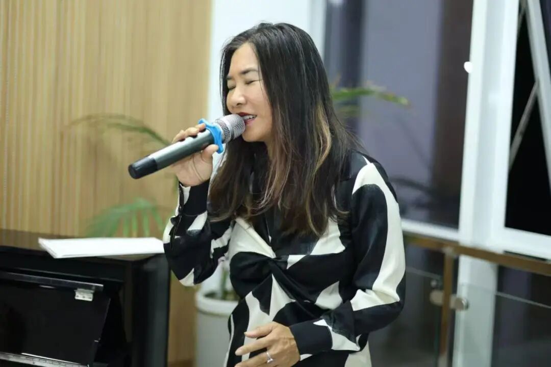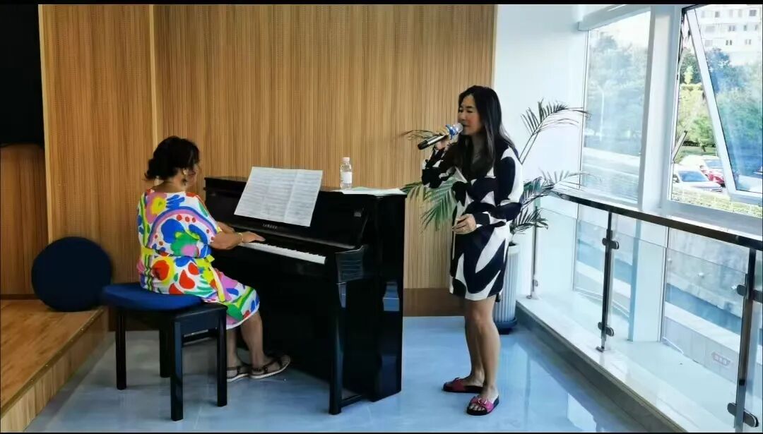 谈至酣处,爱莲老师起身演奏肖邦练习曲第三首《离别》,浪漫而不乏冲突的琴声将现场气氛推至高潮。顺子紧随其后,演唱了一首1973年百老汇经典歌曲《小夜曲》(Send in the Clowns)。一曲终了,顺子意犹未尽,现场即兴创编,演唱了一首爵士歌曲,祝妈妈生日快乐。同学们被顺子老师的歌声深深感染,跟着歌声打起了节拍。音乐是永不散场的浪漫盛宴,轻快的旋律在空中流淌……