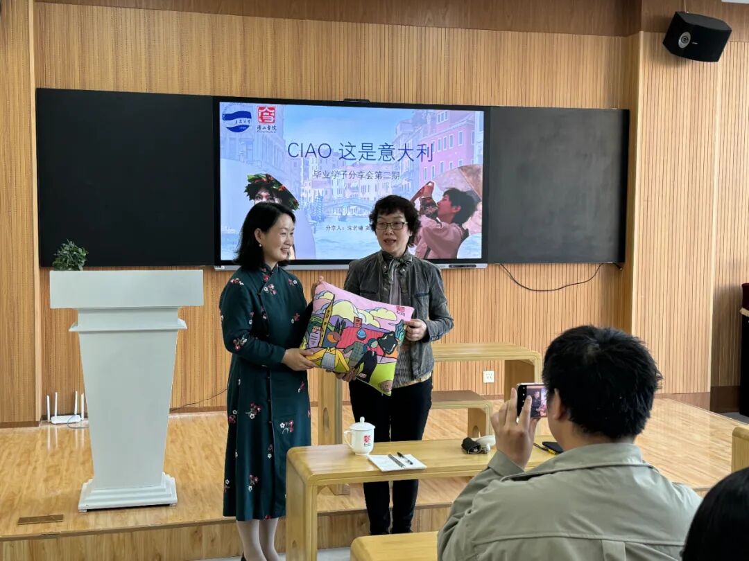 随着孙小娥老师诚挚的话音落下,分享会也即将迎来尾声。远游返校的师姐们,从意大利带来的不仅有经验,还有精美的书签和美味的饼干。师生们品尝饼干,分享趣事,其乐融融,温暖欣喜,意犹未尽。