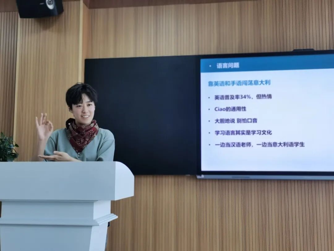 5月26日下午三点,浮山书院在大音堂举行了第二期优秀毕业学子分享会。本期分享会的嘉宾是浮山书院第九届学子宋若曦和窦梦雨,浮山书院修业导师孙小娥老师作为与谈人,共同围绕“Ciao这是意大利”这一主题进行了三个多小时的分享与交流。分享开始前,浮山书院卢文丽老师首先向书院在读学子介绍了两位师姐。卢老师提到,本次分享会是由“天时、地利、人和”促成的——天时在雨雾挥散、日光大亮;地利在新址建成、湖畔典雅、焕然一新;人和在两位师姐从意大利返青,同有空档、佳期偶得,书院师生齐聚一堂、与朋为伴、相聚甚欢。伴着和煦的微风、融融的暖意,本次分享会正式开始。