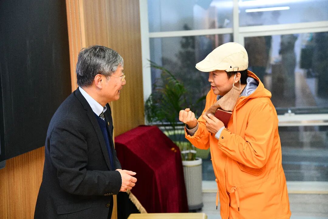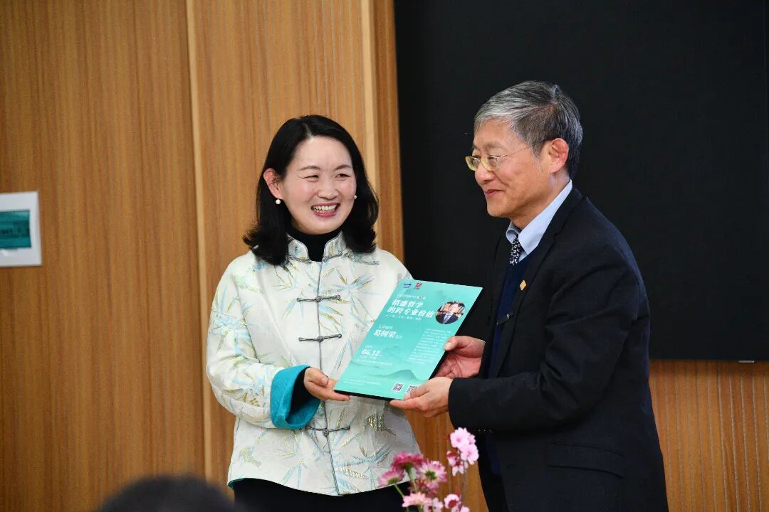 讲座后,卢文丽老师为葛老师赠送湖畔问学水晶版海报作为礼物留念。