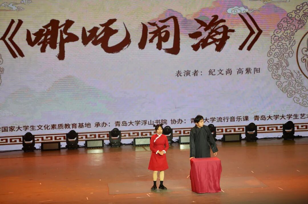 哪吒闹海的故事早已家喻户晓。而这一次纪文尚与高紫阳两位同学却为我们带来了另一种崭新的剧情走向,相声中搞笑的包袱比比皆是,不断赢得全场的笑声!