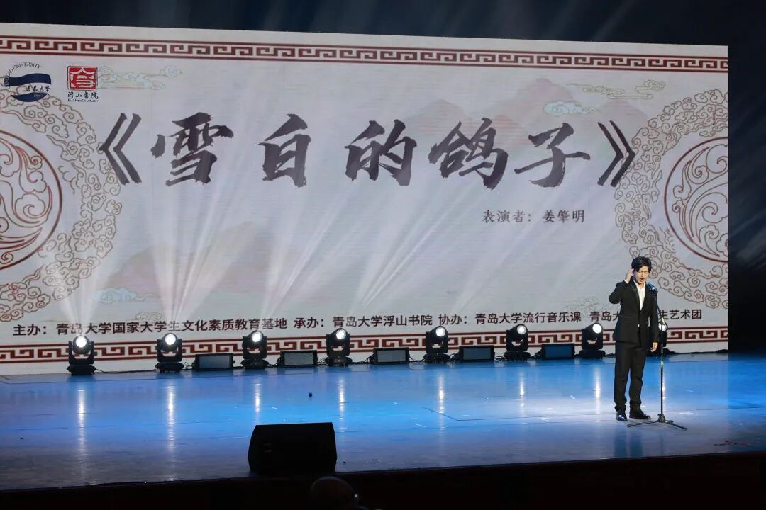 青海民歌《雪白的鸽子》由浮山书院第十七届学子姜肇明倾情奉献。他的歌声嘹亮且极富情绪张力,恍惚间,仿佛真有一群鸽子从高原之上飞入了我们的心田。