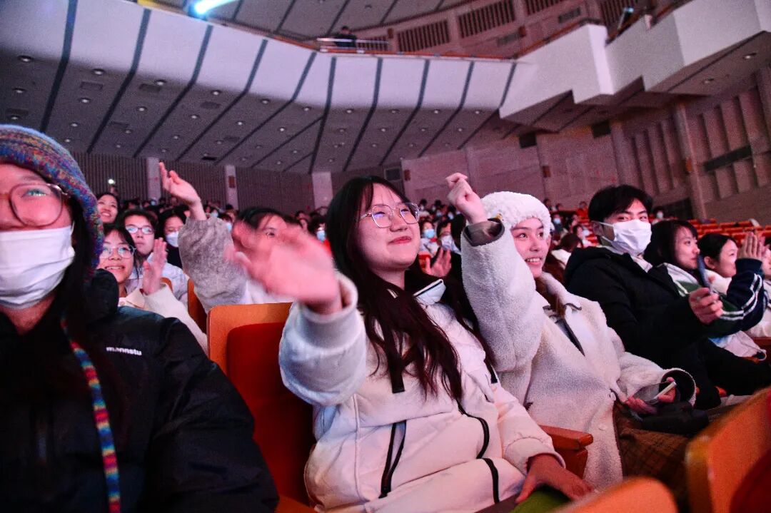 在百年前那个激荡的觉醒年代,弘一法师用一曲《夕歌》希冀当时的学子们“将来治国平天下,全靠吾辈”。当下,这一历史重担交到了我们手里,身为博雅学子,理应奋发图强,有一份热,发一份光!当浮山书院全体同学合唱《夕歌》时,全场观众挥手致意,共同合唱,晚会的氛围也到达了高潮。