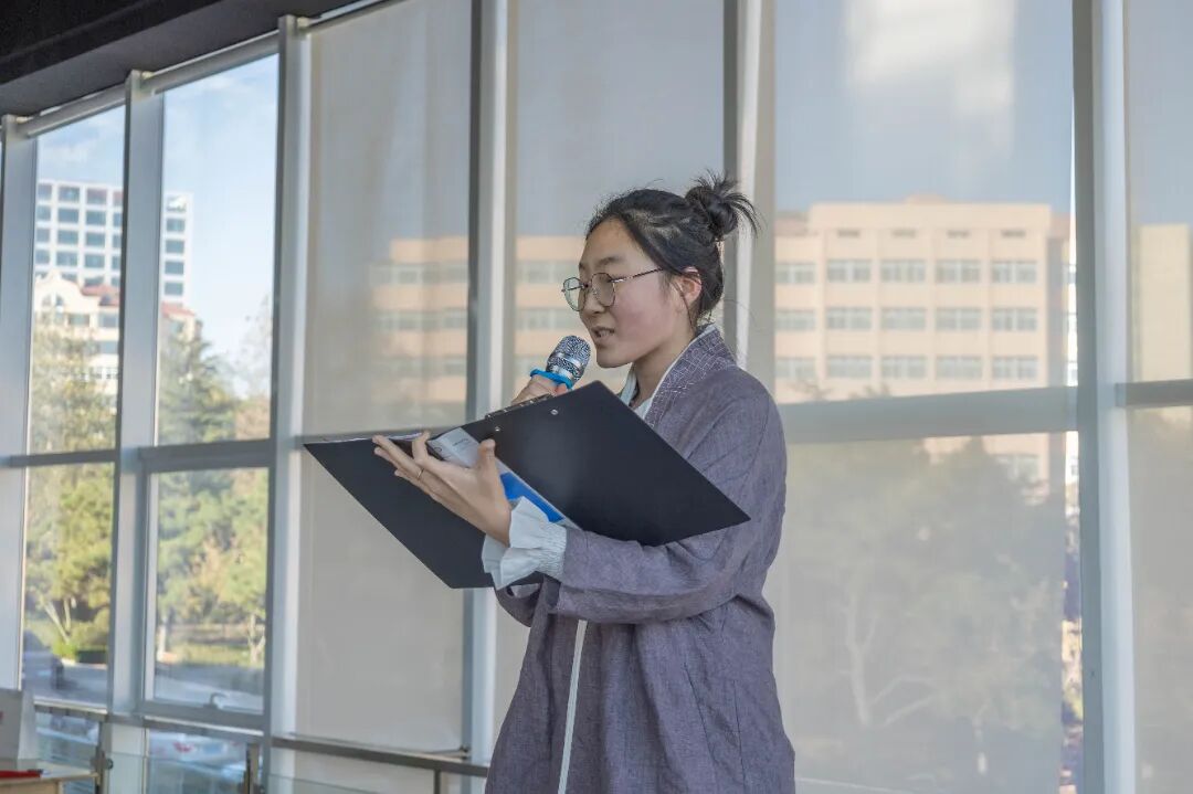 第十六届学子宋雨潼分享了自己进入书院一年来的收获与感悟。书院亲切温暖、富有智慧的老师让她学会接人待物、进退有度;书院师兄师姐的引领,让她的潜能得以激发;书院同伴们的鼓励,让她找到了热爱生命的意义支点。最后,雨潼师姐希望师弟师妹们在这片大学里的“桃花源”选择热爱,扎根向上。