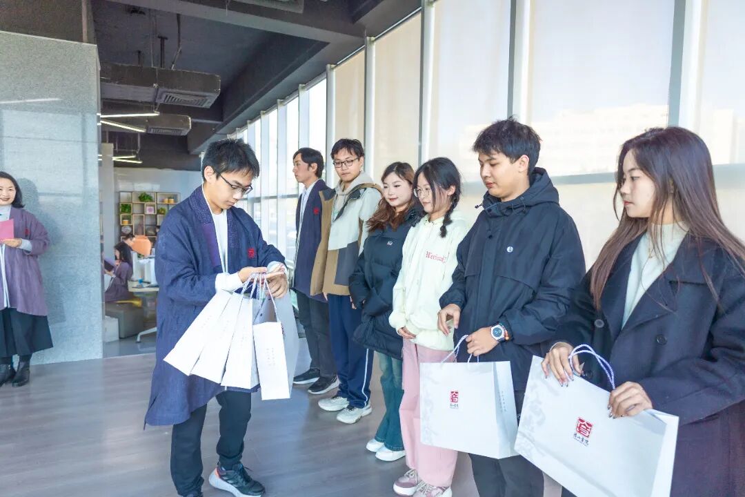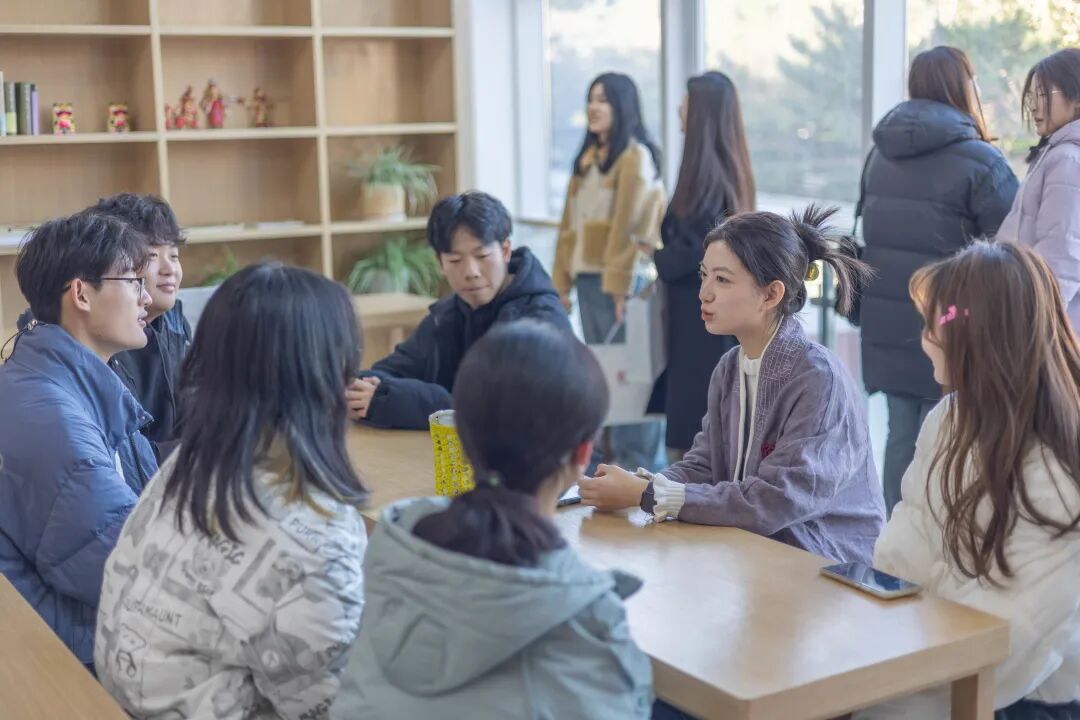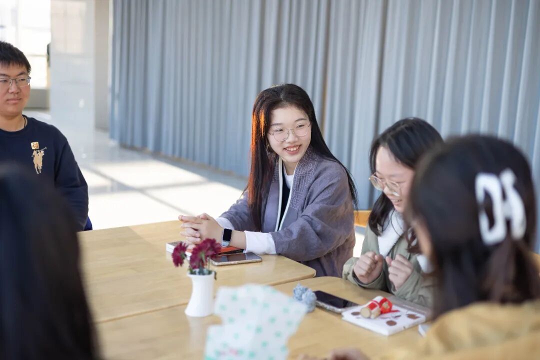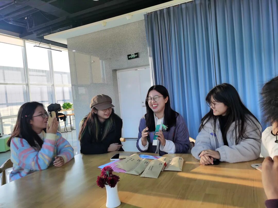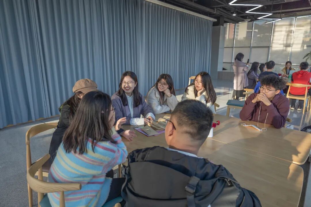 典礼仪式结束后,同学们分成十个小组面对面交流,小组成员互换见面礼物,学长学姐赠送祝福,进行朋辈辅学,气氛热烈而温馨。