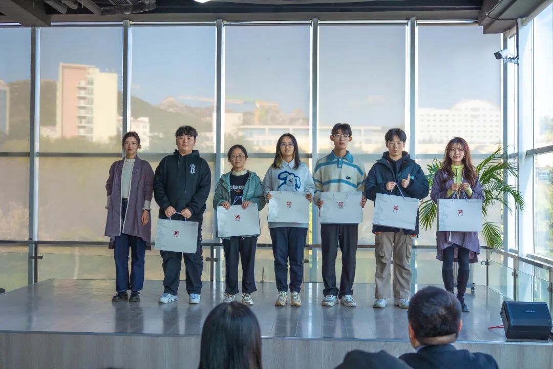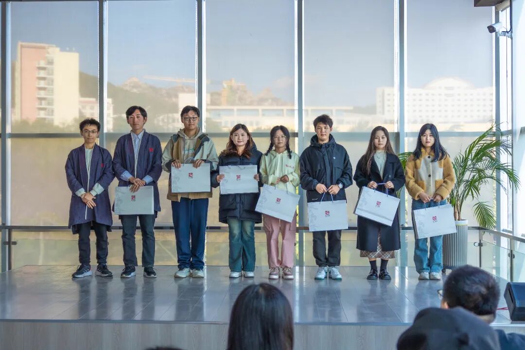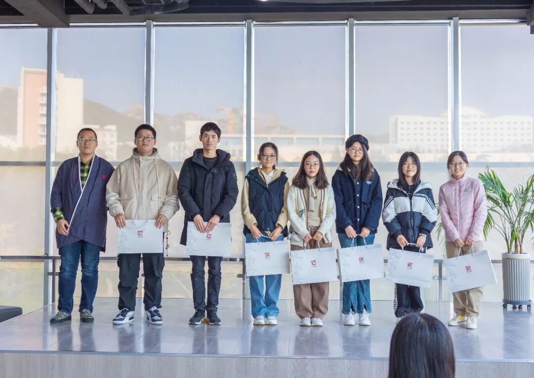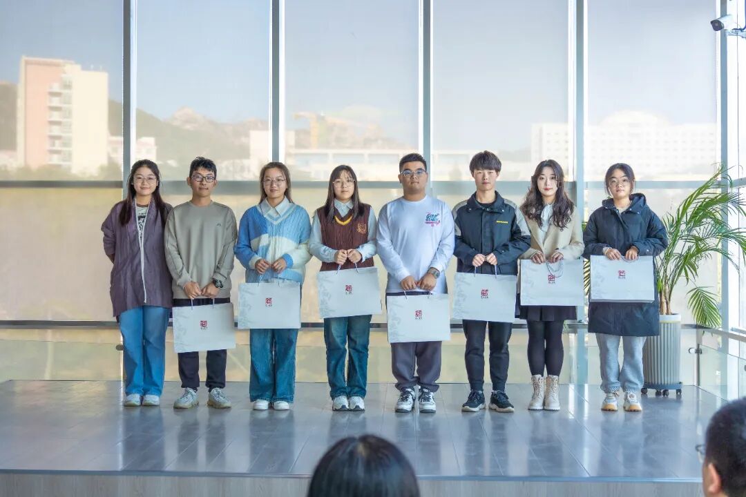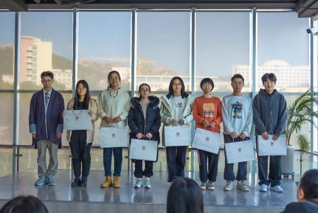 浮山书院博雅班班主任卢文丽老师宣读第十七届博雅班录取名单,同学们按小组依次上台,领取浮山书院院徽和第十六届师兄师姐们精心准备的礼物,包括书院原创明信片和亲手折叠的书院院花——百合花。卢老师热情欢迎同学们加入浮山书院,希望大家怀揣求知、求博、求雅之心,向内躬求,向外驰骛,博观约取,厚积薄发。