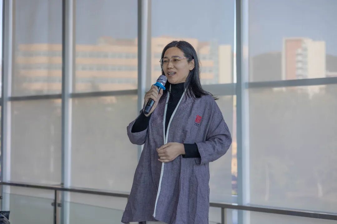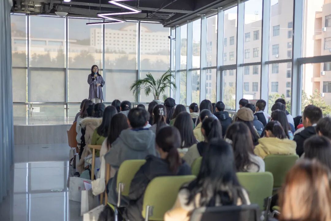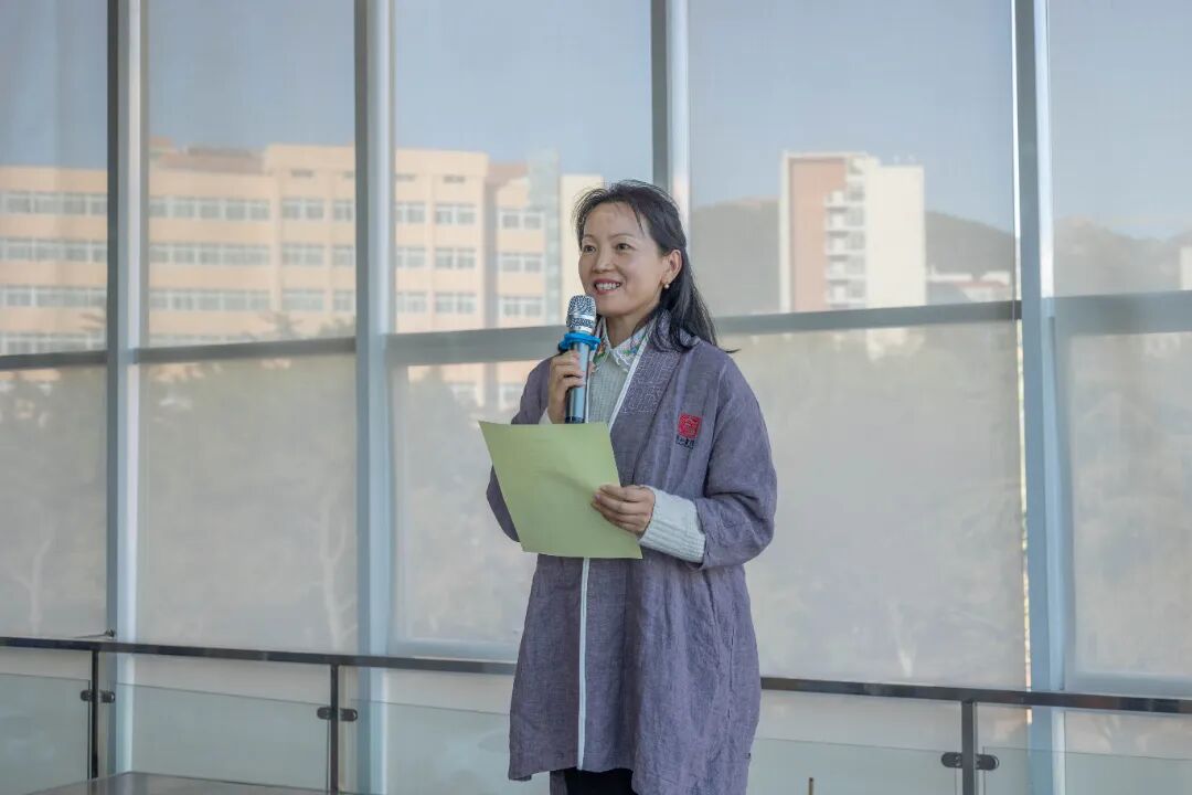 数学与统计学院副院长、浮山书院《数学文化》主讲教师丁洁玉老师代表修业导师发表寄语,她围绕“缘”“融”“情”三字娓娓道来,希望同学们珍惜相聚之缘,在浮山书院跨学科、多元化的教育平台交融碰撞,用真情、热情和激情书写无悔的大学和无怨的青春。