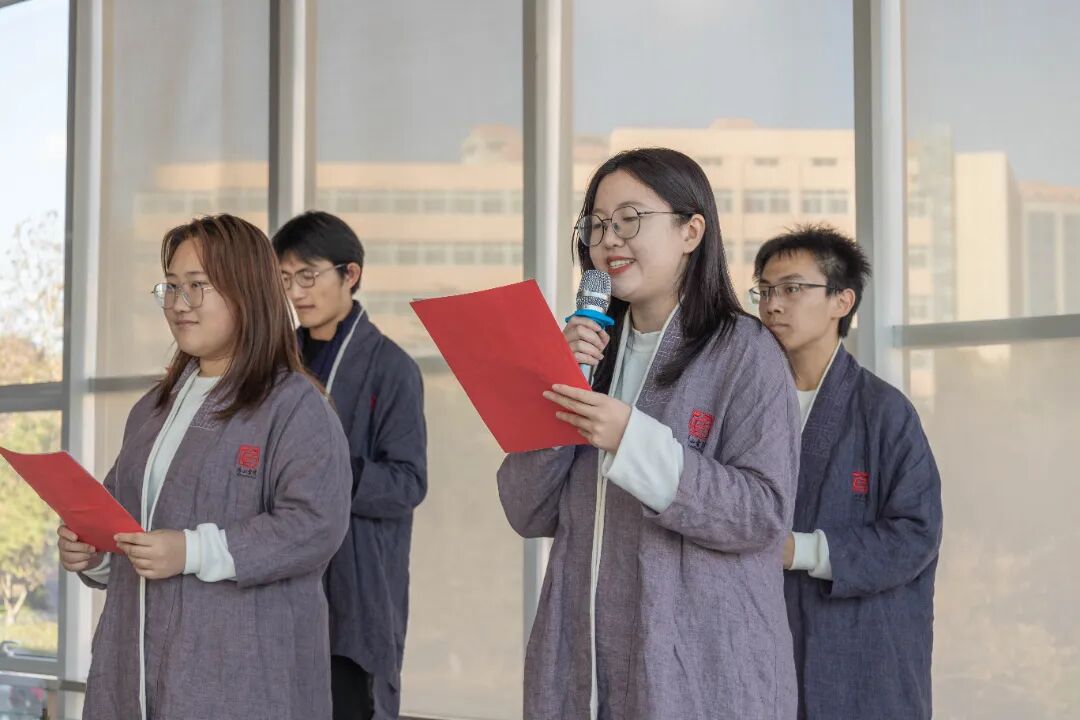 “光阴似流水,不一会儿,课毕放学归”,开班典礼伴随着范祉欣师姐领唱的《夕歌》落下帷幕。《夕歌》表达了以治国平天下为己任的远大志向,给学子以极大鞭策和鼓舞。