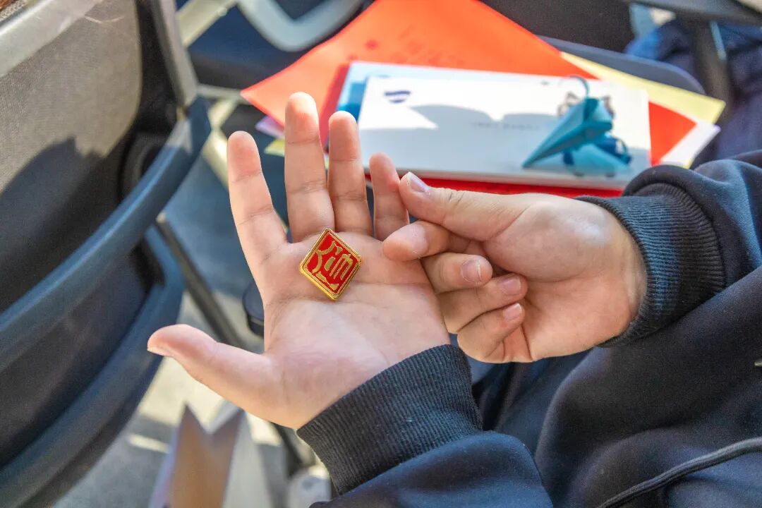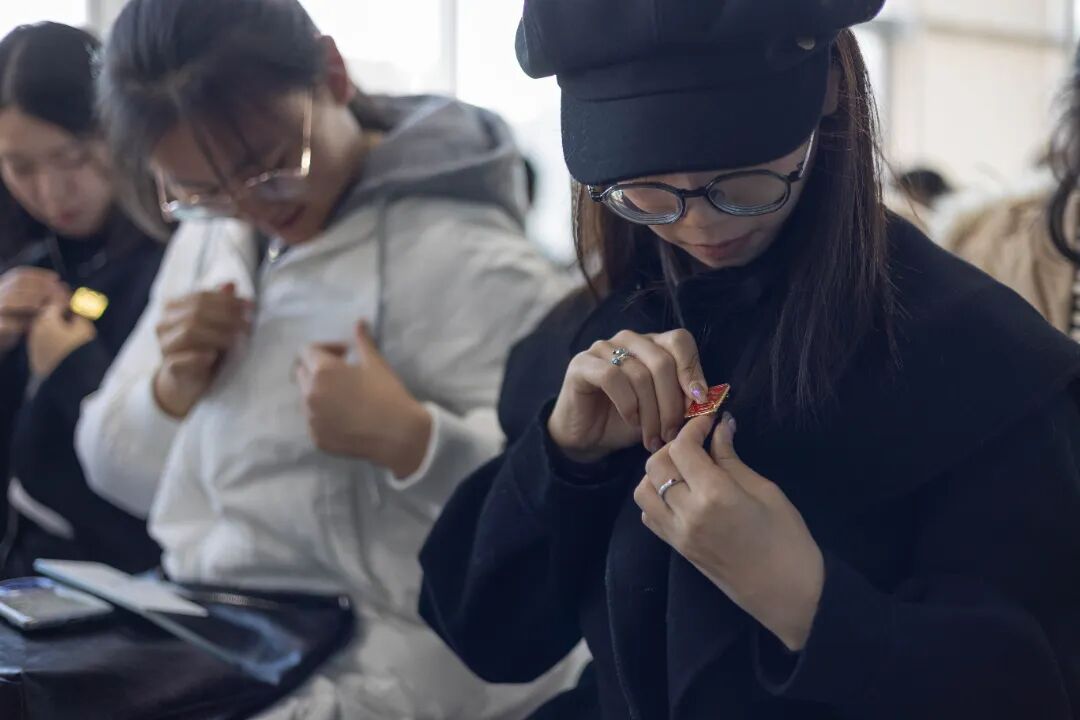 同学们在隋云婷师姐的示范下佩戴上了崭新的院徽。